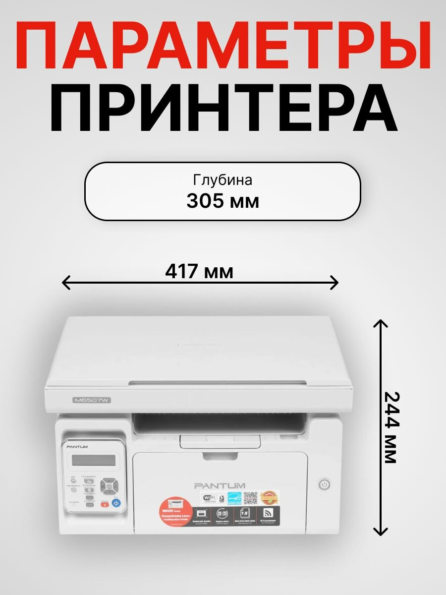 Pantum M6507W лазерный МФУ A4 Wi-Fi серый, скорость печати 22 стр/мин, ресурс картриджа 2200 страниц: сравнение цен, характеристики, фото, актуальное наличие и цены.