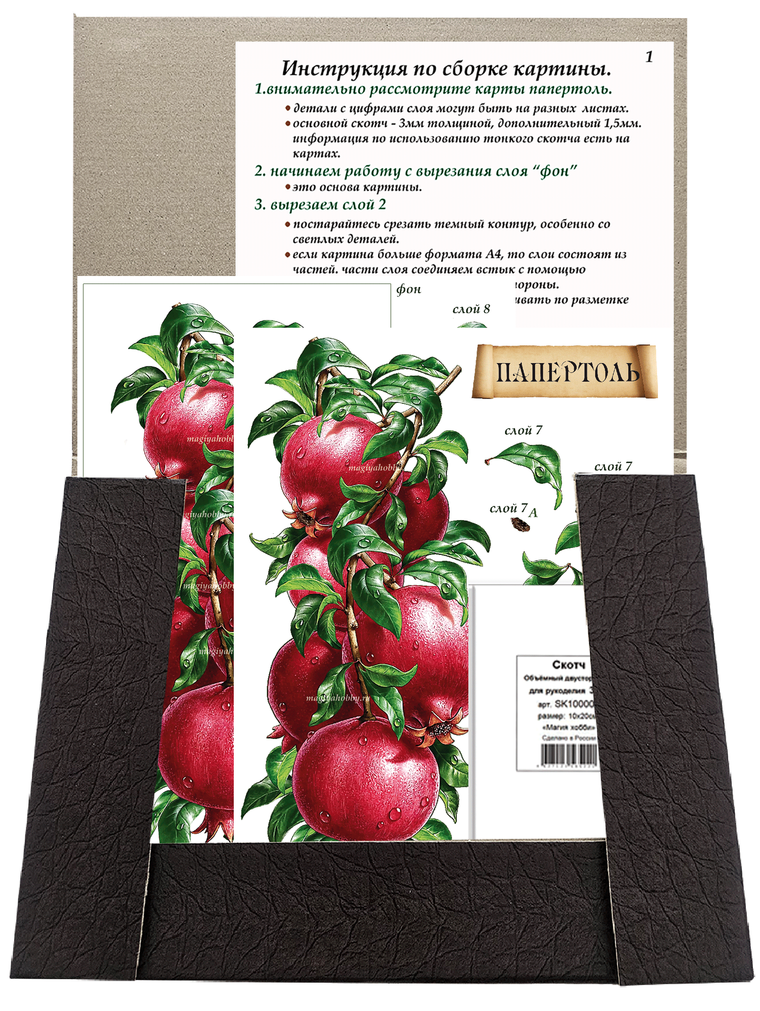 Купить Папертоль «Сочный гранат» 15*29см.- РТ150264, Магия Хобби. Набор для творчества, создания объемных 3Д картин с доставкой по всей России.