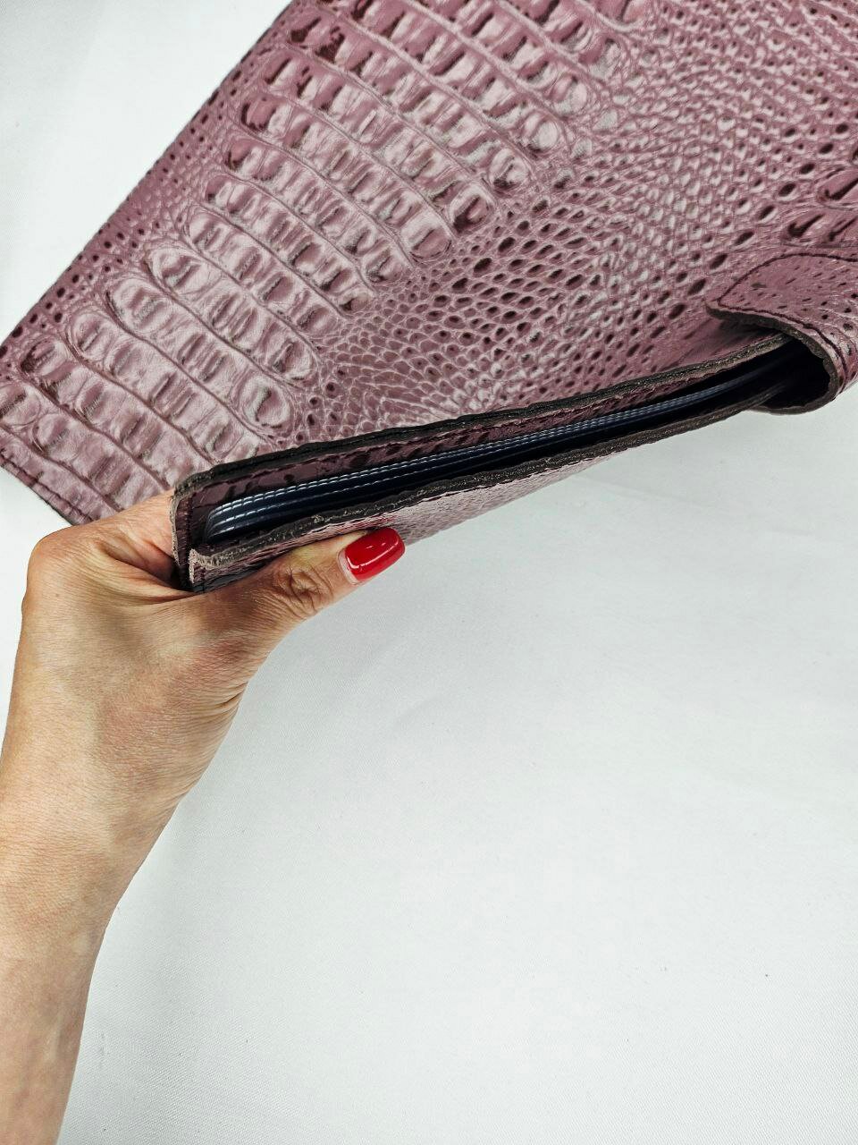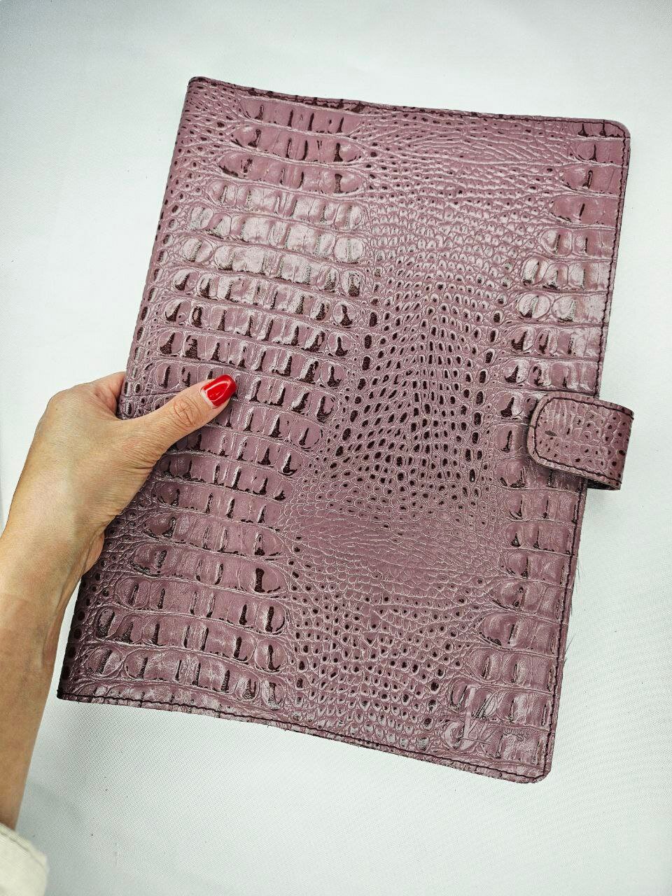 Папка для документов кожаная/Органайзер из кожи с файлами семейный/Папка-конверт на кнопке деловая кайман ирис
