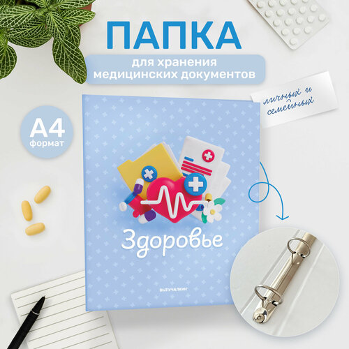 Папка для документов семейная, вместительная, на кольцах «Здоровье». Вмещает в себя до 150 файлов с документами размера А4 (файлы в комплект не входят). Размер папки 31х26х4 см. Файлы не выглядывают из-под твёрдой картонной обложки, и документы не мнутся. Сохранность документов также гарантируют надёжные тугие кольца. Вы можете использовать папку для хранения любых медицинских выписок, справок и назначений как для конкретного человека, например ребёнка, так и для всей семьи в общем. Дизайн универсален, подходит для детей и взрослых. Папка будет доставлена вам в картонной коробке, которая защищает от повреждений при транспортировке. Это отличный вариант полезного подарка для людей, которые ценят порядок.