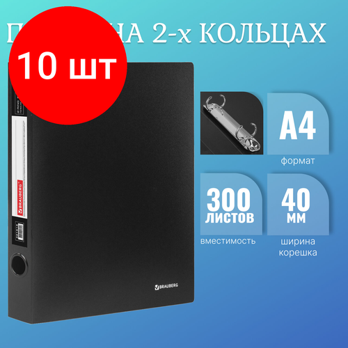 Папка на 2-х кольцах Brauberg «Стандарт» (А4, корешок 40мм, до 250л.) черная (221618), 10шт.: сравнение цен, характеристики, фото, актуальное наличие и цены.