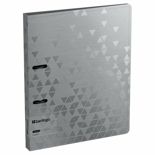 Папка пластиковая на 2 D-кольцах Berlingo "Metallic" формата А4 с рисунком. Стильные черные кольца и фурнитура. Специальная D форма колец помогает удобно и ровно хранить документы, которые могут быть выровнены по левому краю, благодаря боковой вертикальной стенке кольца. Диаметр колец 20мм. Специальные формовые отверстия в обложке служат для надежного защелкивания папки в сложенном виде, предотвращают случайное открытие обложки и замятие документов внутри при хранении и транспортировке. Изготовлена из высококачественного полипропилена с матовой текстурой поверхности "треугольники", на которой не видно отпечатков пальцев и мелких царапин. Предназначена для хранения документов. Толщина обложки 1000мкм. На внутренней стороне обложки оснащена плотным прозрачным карманом для удобного хранения мелочей: ручки, заметок, визиток, дисков, флешек и др. Папка вмещает до 150 листов. Упакована в индивидуальный прозрачный пакет по форме.