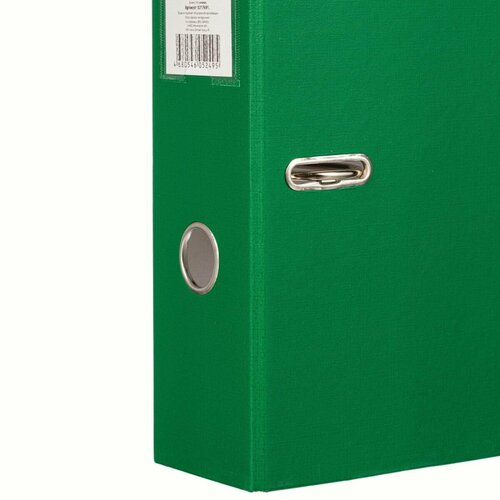 Папка-регистратор Attache Economy изготовлена из плотного картона, что обеспечивает долговечность и надежность хранения документов. Внешняя сторона папки обтянута бумвинилом зеленого цвета, что придает ей стильный и современный вид.