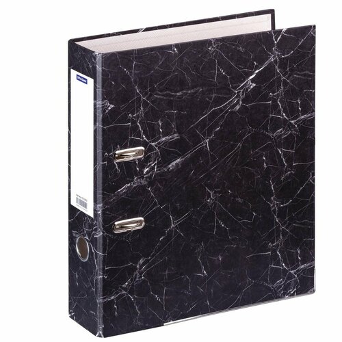 Папка-регистратор OfficeSpace (70мм, А4, картон "под мрамор", метал. кант) черная (251893) представляет собой функциональный и стильный аксессуар для хранения и организации документов.