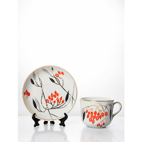 Чайная пара ф. Ностальгия "Кизил" объёмом 450 мл от Дулёвского фарфорового завода поставляется в подарочной упаковке. Изделие произведено в городе Ликино‑Дулёво Московской области, где уже много десятилетий создают фарфор, сочетающий в себе безупречное качество и художественную ценность.
