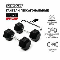 Купить Пара гексагональных гантелей Gravity, вес одной гантели 5 кг, общий вес 10 кг, цвет черный с доставкой по всей России.