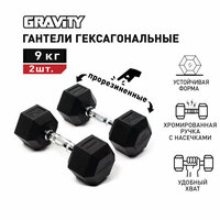 Пара гексагональных гантелей Gravity, вес одной гантели 9 кг, общий вес 18 кг, цвет черный: сравнение цен, характеристики, фото, актуальное наличие и цены.
