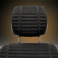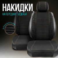 Купить Чехлы в машину на сиденья универсальные в салон. 2шт. Модель L POLOSA. Черный/бежевая строчка с доставкой по всей России.