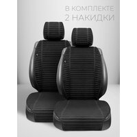 Купить Чехлы в машину на сиденья универсальные в салон. 2шт. Модель L POLOSA. Чёрный/белая строчка с доставкой по всей России.
