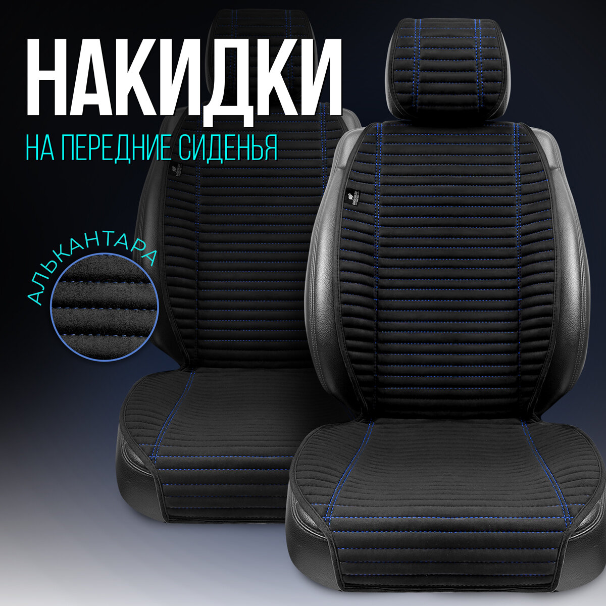 Чехлы в машину на сиденья универсальные в салон. 2шт. Модель L POLOSA. Чёрный/синяя строчка: сравнение цен, характеристики, фото, актуальное наличие и цены.