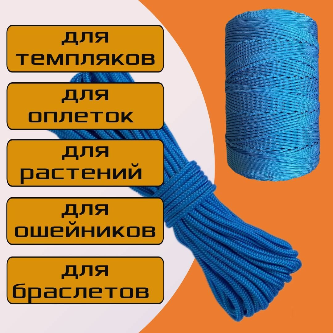 Паракорд голубой 3 мм / плетеный шнур, яркий, прочный, универсальный, длина 30 метров