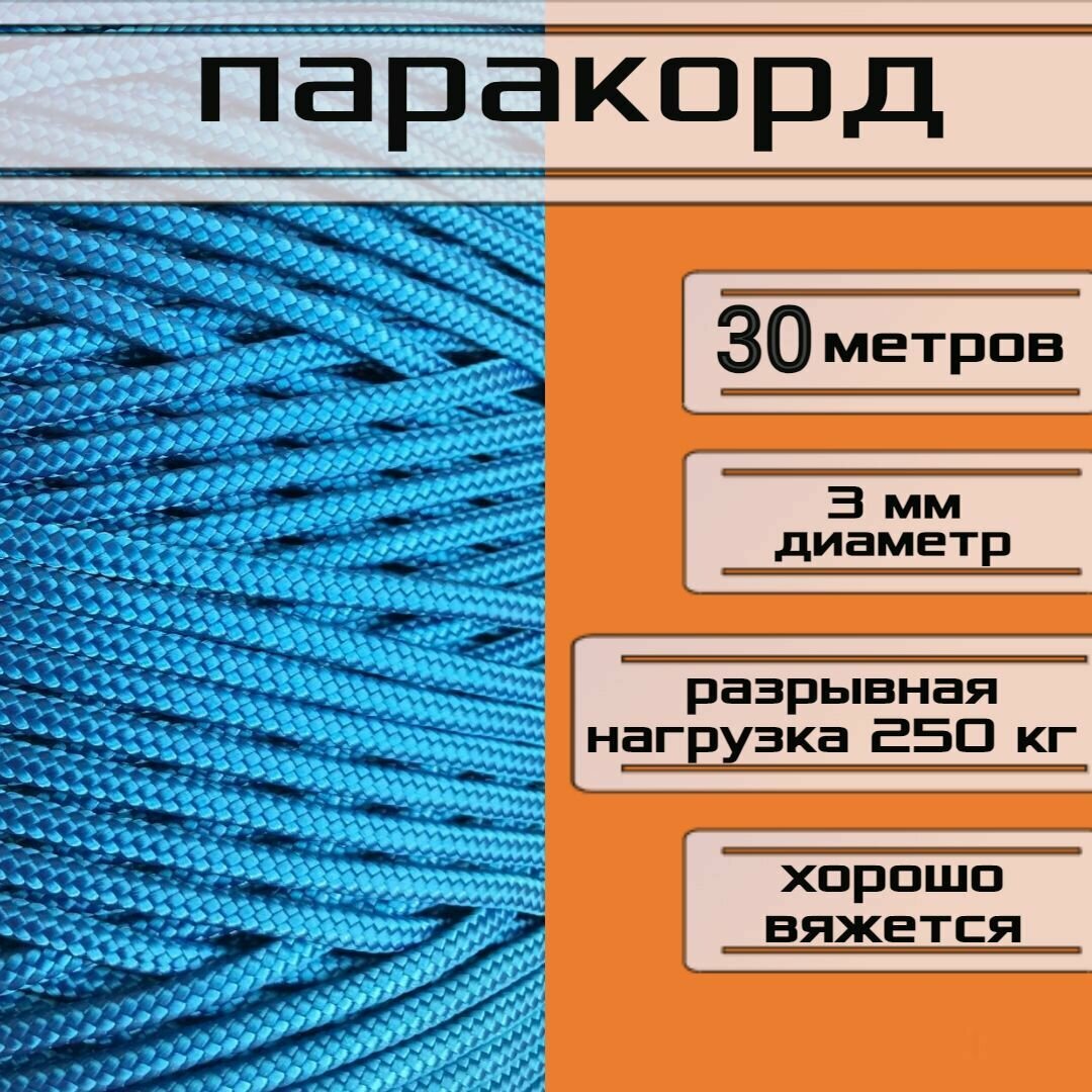 Купить Паракорд голубой 3 мм / плетеный шнур, яркий, прочный, универсальный, длина 30 метров с доставкой по всей России.