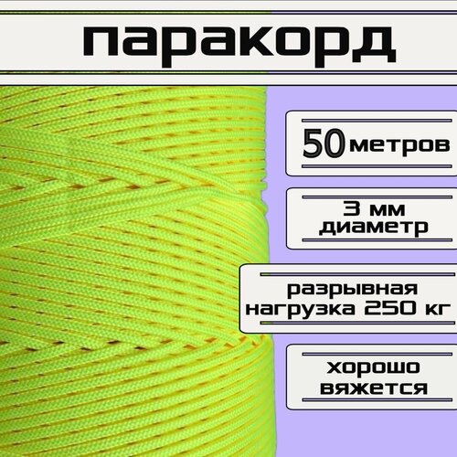 Паракорд желтый неон 3 мм / плетеный шнур, яркий, прочный, универсальный, длина 50 метров: сравнение цен, характеристики, фото, актуальное наличие и цены.