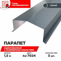 Парапет на кирпичный забор металлический, оцинкованный. Серый графит RAL 7024. Комплект из 3 штук. Длина 1,5 метра.: сравнение цен, характеристики, фото, актуальное наличие и цены.