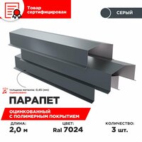Парапет на кирпичный забор металлический, оцинкованный. Серый графит RAL 7024. Комплект из 3 штук. Длина 2 метра.: сравнение цен, характеристики, фото, актуальное наличие и цены.