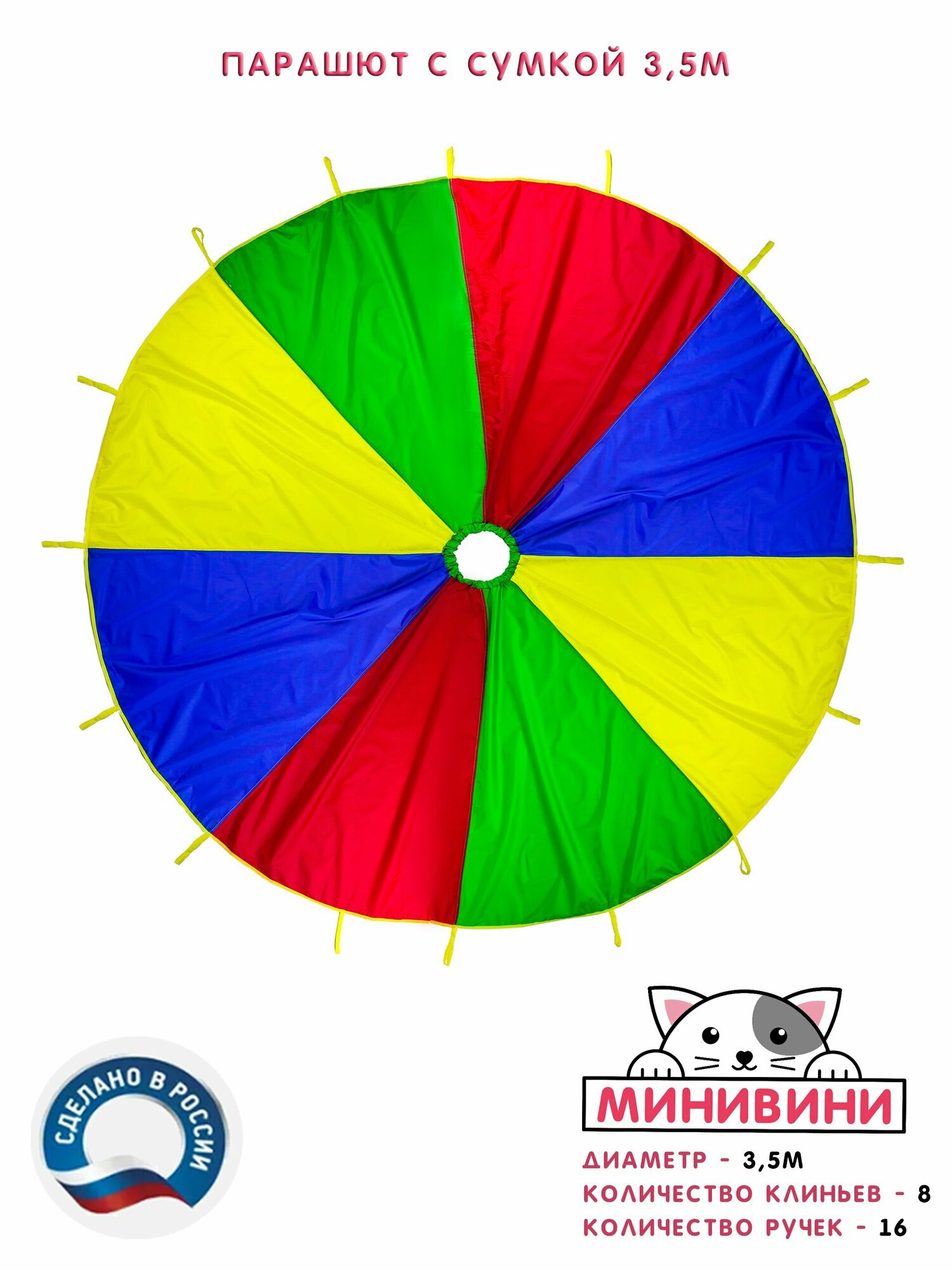 Купить Детский спортивный товар Парашют (3,5м) с сумкой для игр и эстафет минивини с доставкой по всей России.