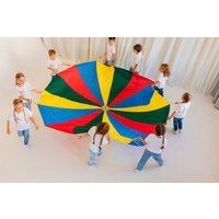 Как и в других подвижных играх, дети учатся соблюдать правила игры, дожидаться своей очереди, взаимодействовать друг с другом. Парашют помогает раскрепостить скромных детей, способствует формированию команды, развивает чувство ритма и хорошо сказывается на физическом развитии ребенка. Парашют даёт ребёнку богатый спектр новых ощущений: это и яркий зрительный образ, и сильный ветер, и звон натянутого парашюта, и ощущение мягкой ткани, обнимающей ребёнка, сидящего под парашютом.