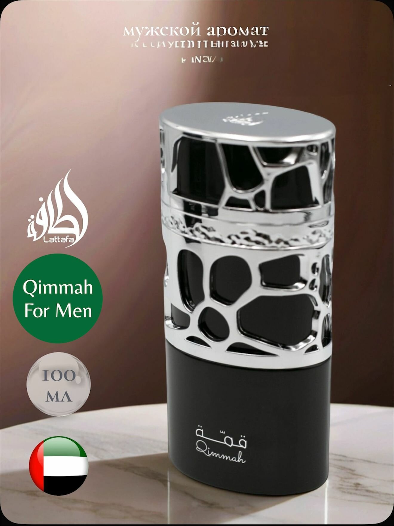 Qimmah For Men — стильный, глубокий и благородный по звучанию мужской восточно-древесный аромат, выпущенный в 2018 году арабским парфюмерным брендом Lattafa в рамках парфюмерного дуэта для нее и для него «Qimmah». Мужская версия аромата отличается особой глубиной и многогранностью звучания. Мягкой, теплый и очень мужской по своему характеру ароматической аурой парфюм ложится на теплую мужскую кожу, подчеркивая стиль и харизму своего владельца. А угольно-черный флакон, окутанный серебристой вязью металлических дизайнерских элементов, выглядит очень современно, стильно и даже футуристично.