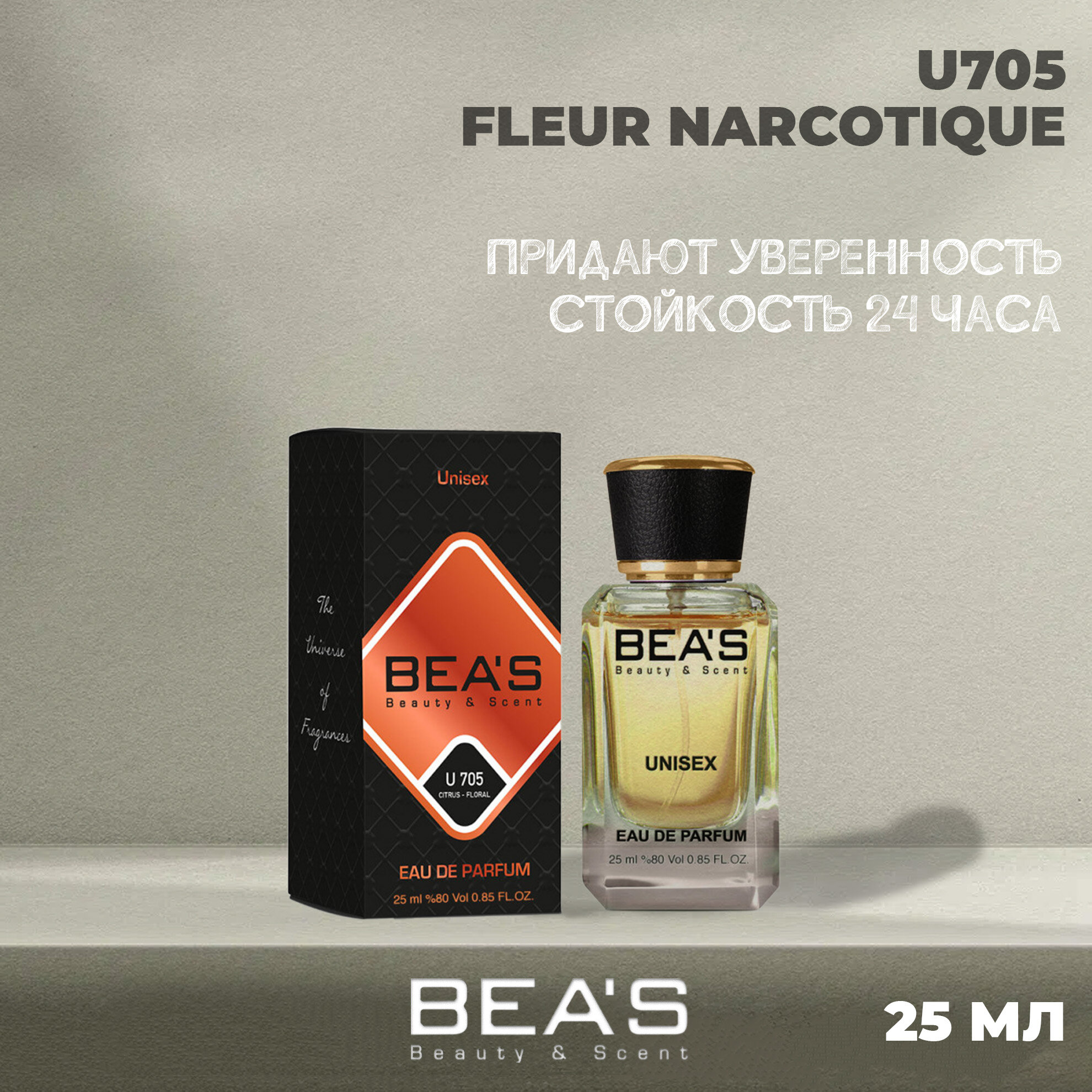 Духи женские и мужские BEAS Fleur Narcotique - это настоящая песня природы, сплетение ярких и нежных нот, которые прекрасно дополняют друг друга. Классифицируясь как унисекс-аромат и принадлежащий к семействам Фруктовые и Цветочные, он обладает неповторимым магнетизмом и привлекательностью, способной окутать каждого своим таинственным обаянием. Туалетная вода женская и мужская Флёр Наркотик имеет следующую композицию: С самых первых нот этого аромата вас встречает свежесть и сладость белого персика, бергамота и личи, создавая своеобразный аккорд, словно первые нежные шорохи природы после зимнего сна. В сердце композиции расцветают апельсиновый цвет, пион и жасмин, создавая букет цветов, который словно нежное прикосновение весеннего ветра. Базовые ноты аромата подчеркивают его утонченность и глубину. Древесный аккорд придает аромату структуру и тепло, словно обволакивая своим прикосновением. Мох приносит в него загадочность и интригу, а мускус добавляет ноты нежности и обаяния. Парфюмерная вода женская и мужская Fleur Narcotique - истинное воплощение природной красоты и чувственности. Этот аромат подчеркивает гармонию между фруктовыми и цветочными нотами, создавая неповторимую атмосферу вокруг своего обладателя. Духи Флёр Наркотик - это не просто парфюм, это история, рассказываемая на языке ароматов, и каждый, кто его носит, становится частью этой магической истории.