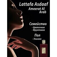 Купить Парфюмерная вода унисекс. Lattafa Asdaaf Ameerat Al Arab 100ml с доставкой по всей России. Парфюмерная вода унисекс. Lattafa Asdaaf Ameerat Al Arab 100ml: сравнение цен, характеристики, фото, актуальное наличие и цены.