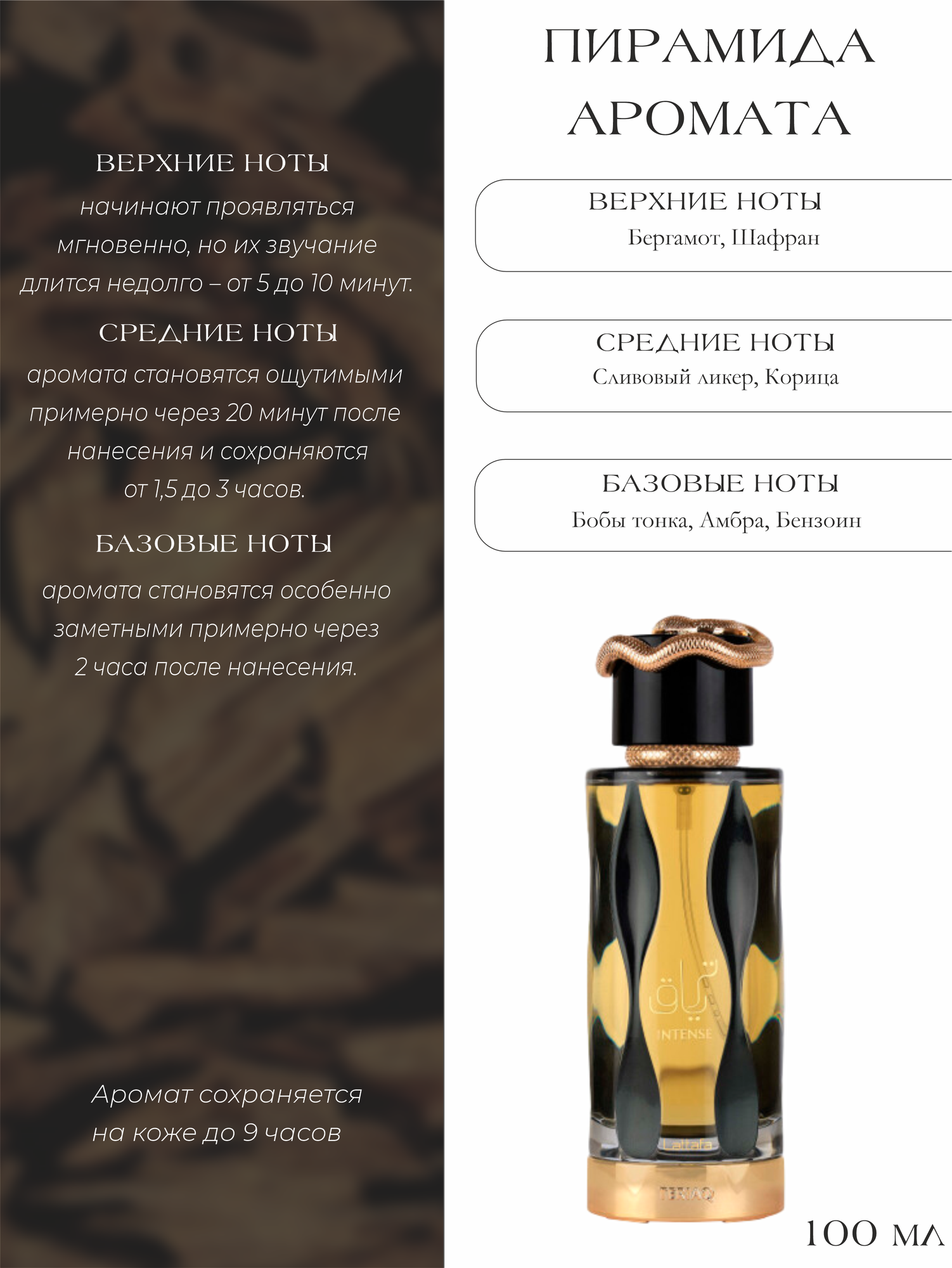 Teriaq Intense – это идеальный выбор для тех, кто ищет аромат, сочетающий в себе энергичность и утонченность, свежесть и тепло. Этот парфюм подходит для любого времени года и уместен как в повседневной жизни, так и на особых мероприятиях.