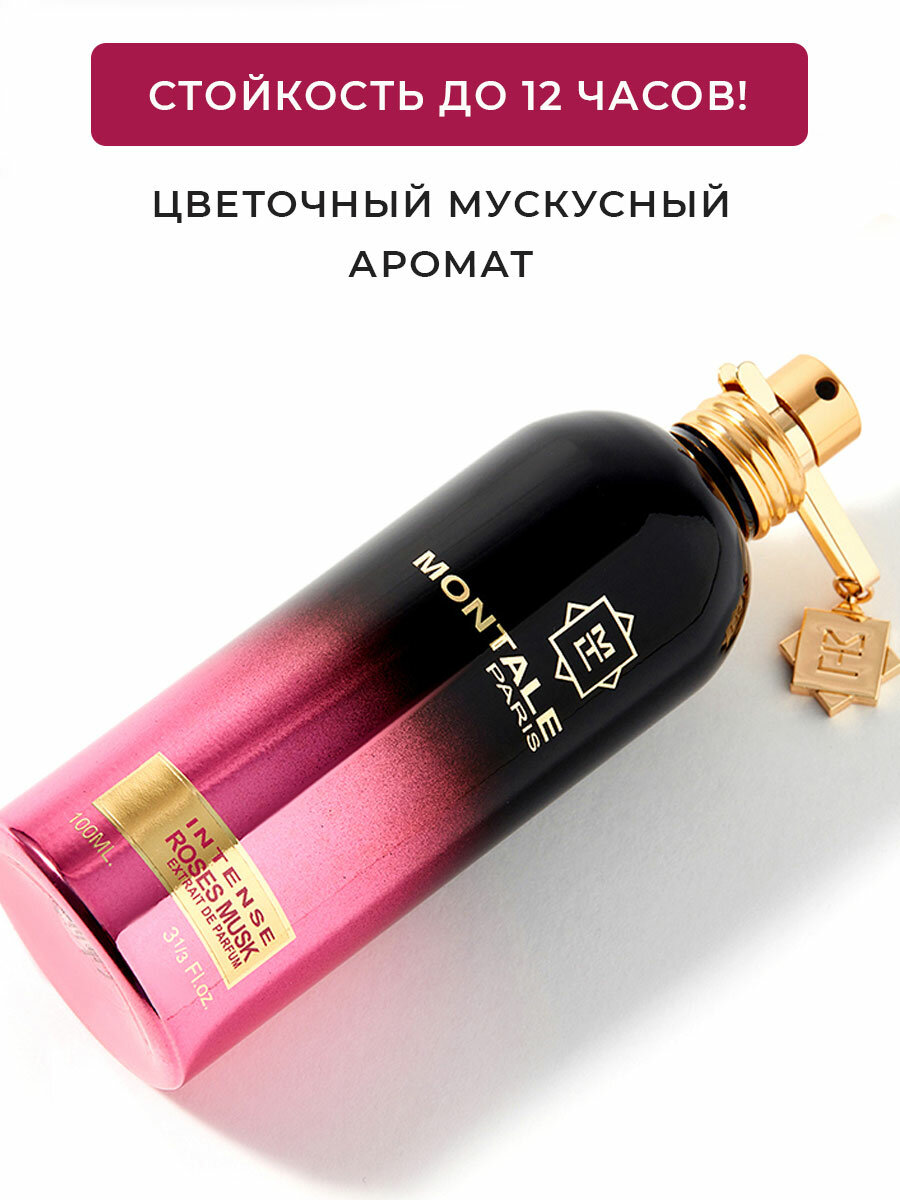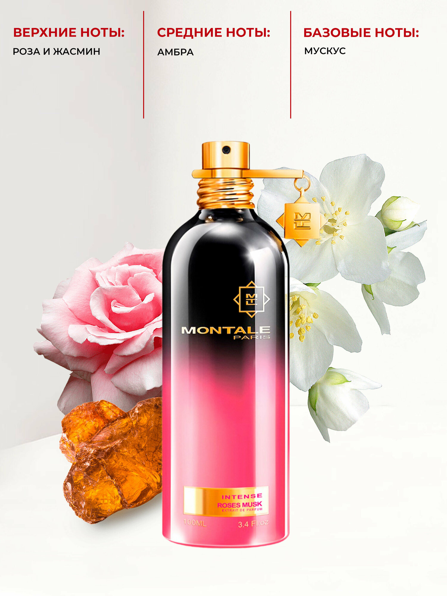 Этот восхитительный аромат выбирают те прекрасные дамы, которым нет нужды агрессивно и громко кричать о своей сексуальности. Женщина, облаченная в Montale Roses Musk Intense, обладает настоящим природным обаянием. Такой прекрасной леди нет нужды подчеркивать свое очарование, ибо сексуальность - это ее суть, ее основа. Всего несколько капель, и Вас окутает бархатными лепестками роскошная, женственная страстная роза. Intense Roses Musk – роскошный цветочно-мускусный женский парфюм, выпущенный в 2015 году популярным французским домом нишевой парфюмерии Montale. Яркий, игристый и завораживающий парфюм дарит бархатисто-пряный с тонкими медовыми переливами аромат роскошной царственной розы. Он звучит безумно красиво и плавно, словно мерцая ароматическими оттенками. Пьянящий терпковато-медовый запах жасмина вносит в композицию толику терпкости, придавая парфюму особое очарование и глубину. Мягкий, бархатистый мускус изящно гармонирует с цветочными нотами, создавая вокруг них нежную, волнующую ауру. А легкие искорки янтаря придают композиции легкое, игривое настроение. Аромат, как роскошный палантин из драгоценного натурального шелка окутывает свою хозяйку, придавая ее образу особую изысканность и шарм. Женские духи с феромонами Монталь роза - это идеальный подарок для любой женщины на 8 марта, 14 февраля, день рождения или любой другой праздник. Этот аромат станет отличным выбором для мамы, жены, девушки или любимой женщины. Он подчеркнет ее индивидуальность и придаст ей уверенности в себе. Этот женский парфюм - это не просто туалетная вода, это настоящее произведение искусства, которое создано для того, чтобы дарить радость и удовольствие. Парфюм для женщин- это оригинальный подарок, который подойдет для женщин в любом возрасте. Он подчеркнет ее стиль и индивидуальность, а также станет незаменимым аксессуаром в ее гардеробе. Подарите своей любимой женщине этот прекрасный аромат и она будет вам благодарна за такой замечательный подарок. Духи для женщин Motale Roses Musk - это не просто парфюм, это символ роскоши и элегантности.