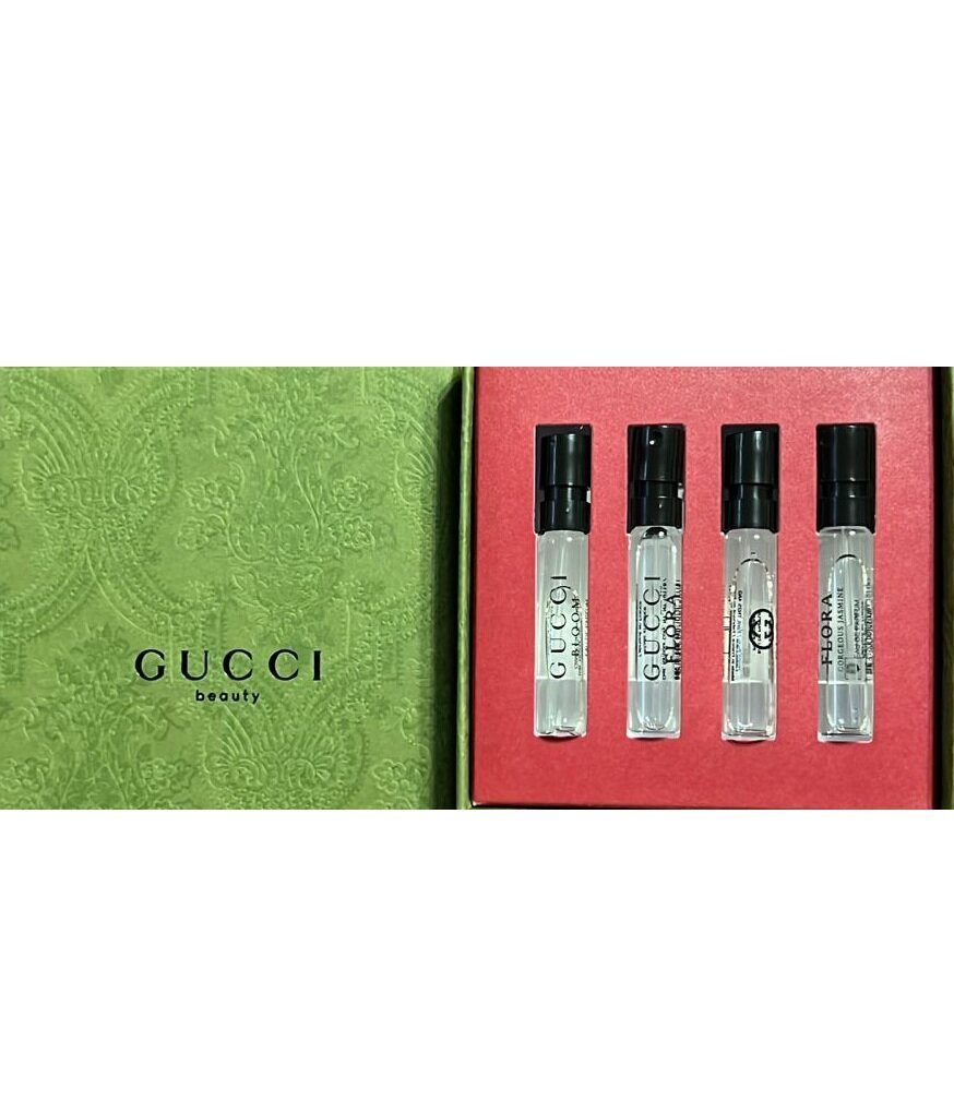Парфюмерный набор для женщин Gucci Flora Gorgeous Vials Set(набор флаконов)-прекрасная возможность познакомиться с ароматами и состоит из 4-х пробников разных ароматов: 1) парфюмерная вода Gucci Gorgeous Gardenia -1,5мл, 2)парфюмерная вода Gucci Gorgeous Orchid -1,5мл,