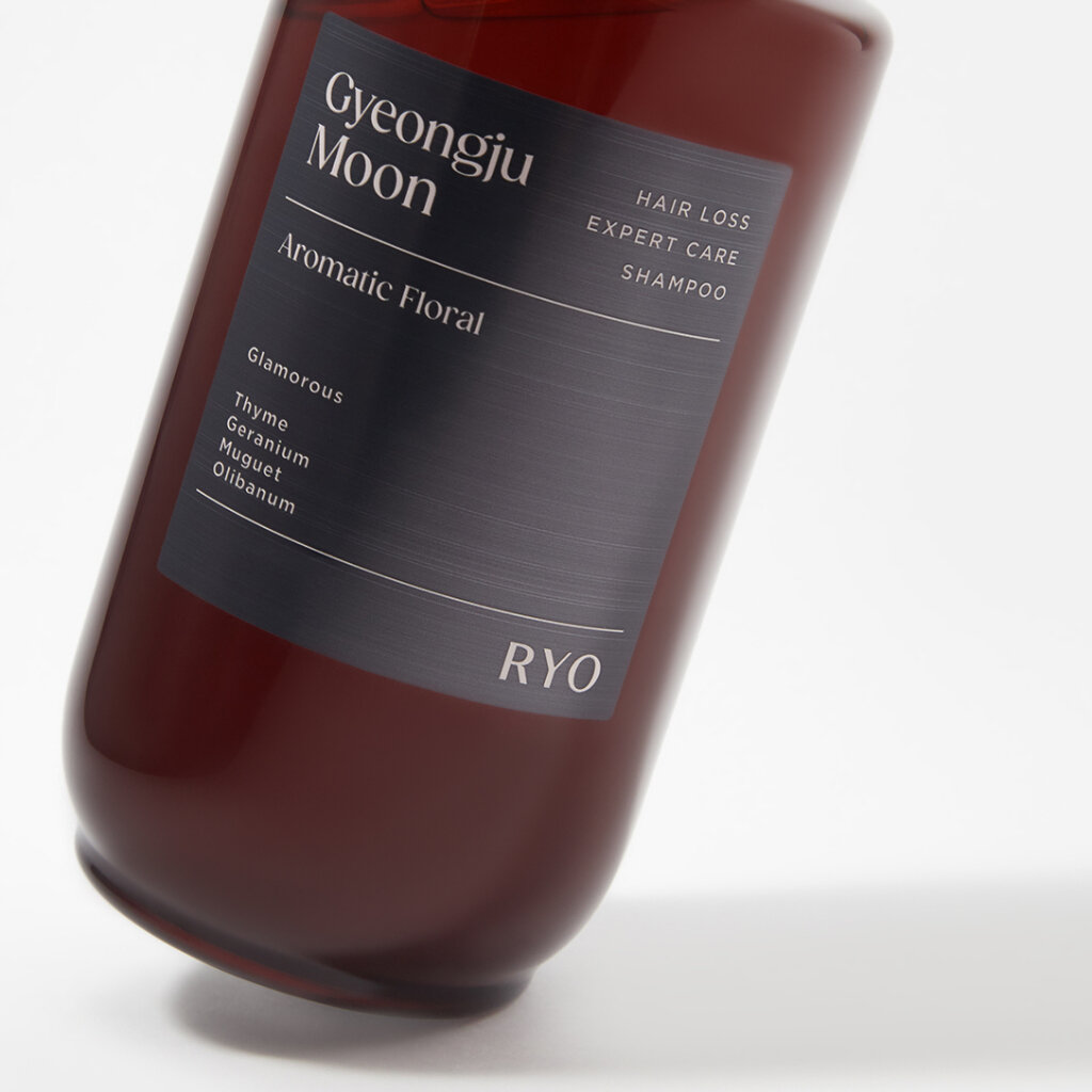 Парфюмированный шампунь RYO Gyeongju Moon подходит для всех типов волос и обеспечивает эффективное очищение, укрепление и снятие зуда и раздражения кожи головы.