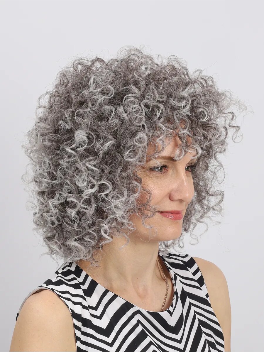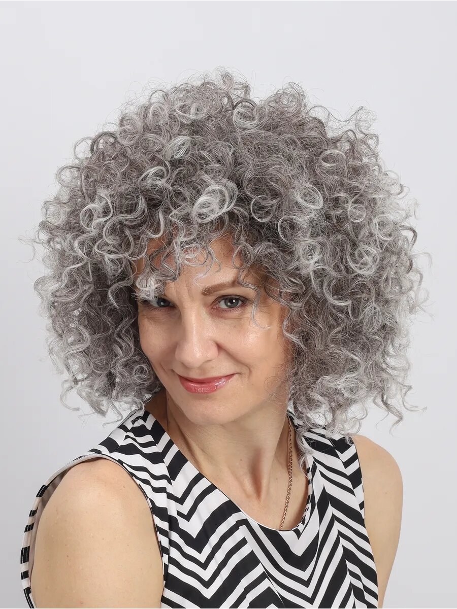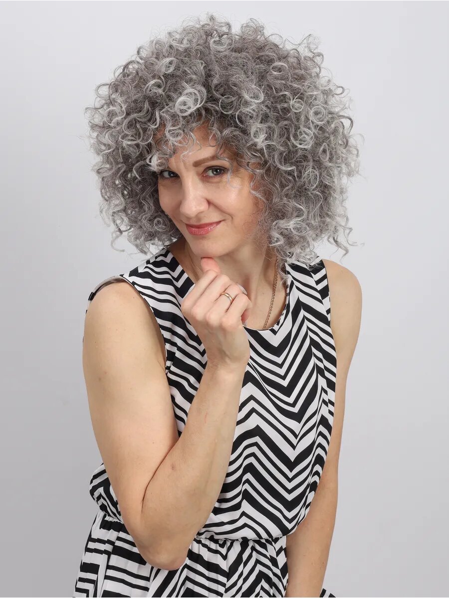 Парик объемный кудрявый ONLYSHAIR серый
