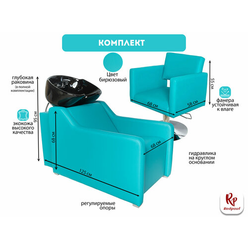 Парикмахерский комплект мойки Gremmi с черной раковиной и кресло Kvadro на круглом основании в Бирюзовом цвете: сравнение цен, характеристики, фото, актуальное наличие и цены.