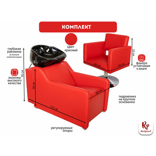 Парикмахерский комплект мойки Gremmi с черной раковиной и кресло Kvadro на круглом основании в Красном цвете: сравнение цен, характеристики, фото, актуальное наличие и цены.