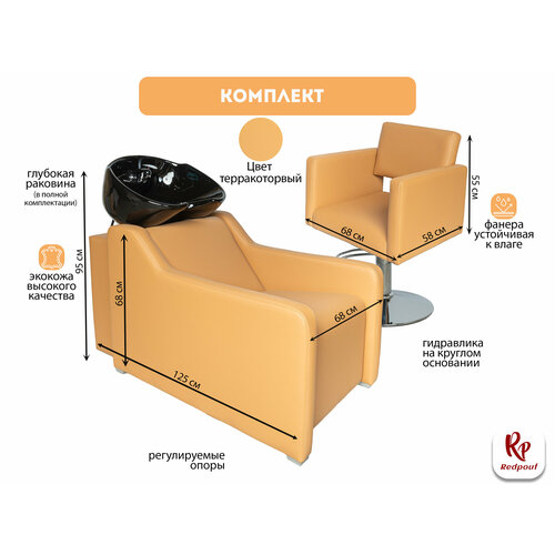 Парикмахерский комплект мойки Gremmi с черной раковиной и кресло Kvadro на круглом основании в Терракотовом цвете: сравнение цен, характеристики, фото, актуальное наличие и цены.