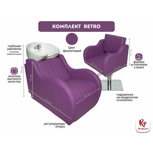 Парикмахерский комплект Retro с белой раковиной и кресло на квадратном основании в фиолетовом цвете: сравнение цен, характеристики, фото, актуальное наличие и цены.