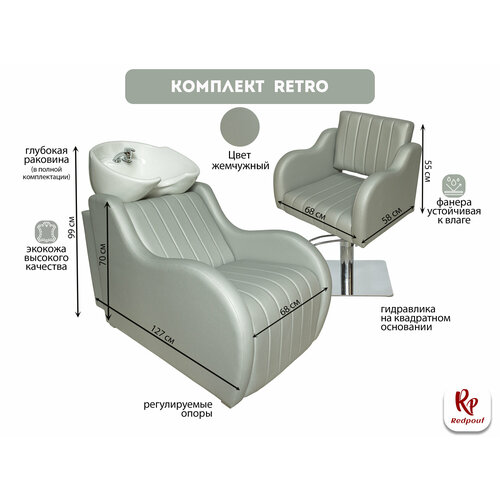 Парикмахерский комплект Retro с белой раковиной и кресло на квадратном основании в серебристом цвете: сравнение цен, характеристики, фото, актуальное наличие и цены.
