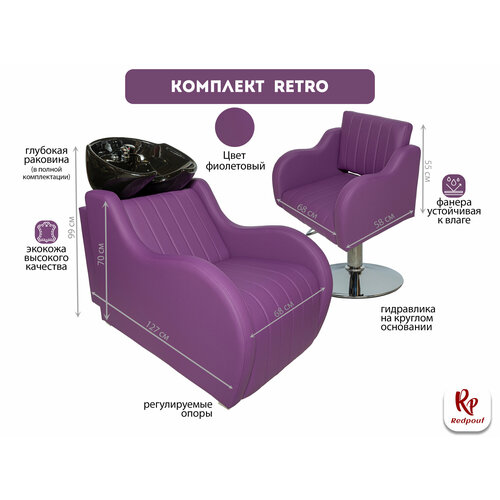 Парикмахерский комплект Retro с черной раковиной и кресло на круглом основании в фиолетовом цвете: сравнение цен, характеристики, фото, актуальное наличие и цены.
