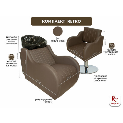 Парикмахерский комплект Retro с черной раковиной и кресло на круглом основании в коричневом цвете: сравнение цен, характеристики, фото, актуальное наличие и цены.