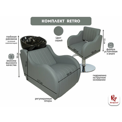 Парикмахерский комплект Retro с черной раковиной и кресло на круглом основании в сером цвете: сравнение цен, характеристики, фото, актуальное наличие и цены.