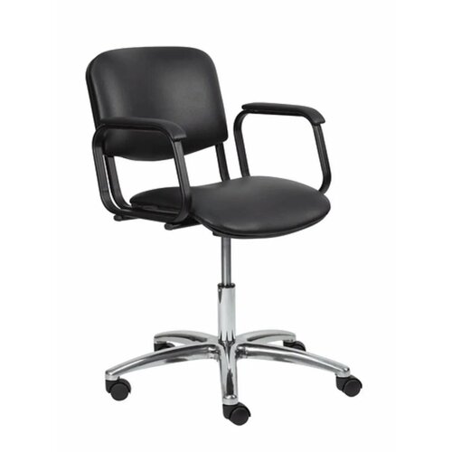 Высота регулируется с помощью пневматического газ-лифта Основание кресла - хромированное пятилучье на колёсиках Мягкие элементы изготовлены из высококачественного, плотного поролона Обивка изделия - искусственная кожа Подлокотники - металлические, с дополненными вставками из кожзама Поворот на 360 градусов