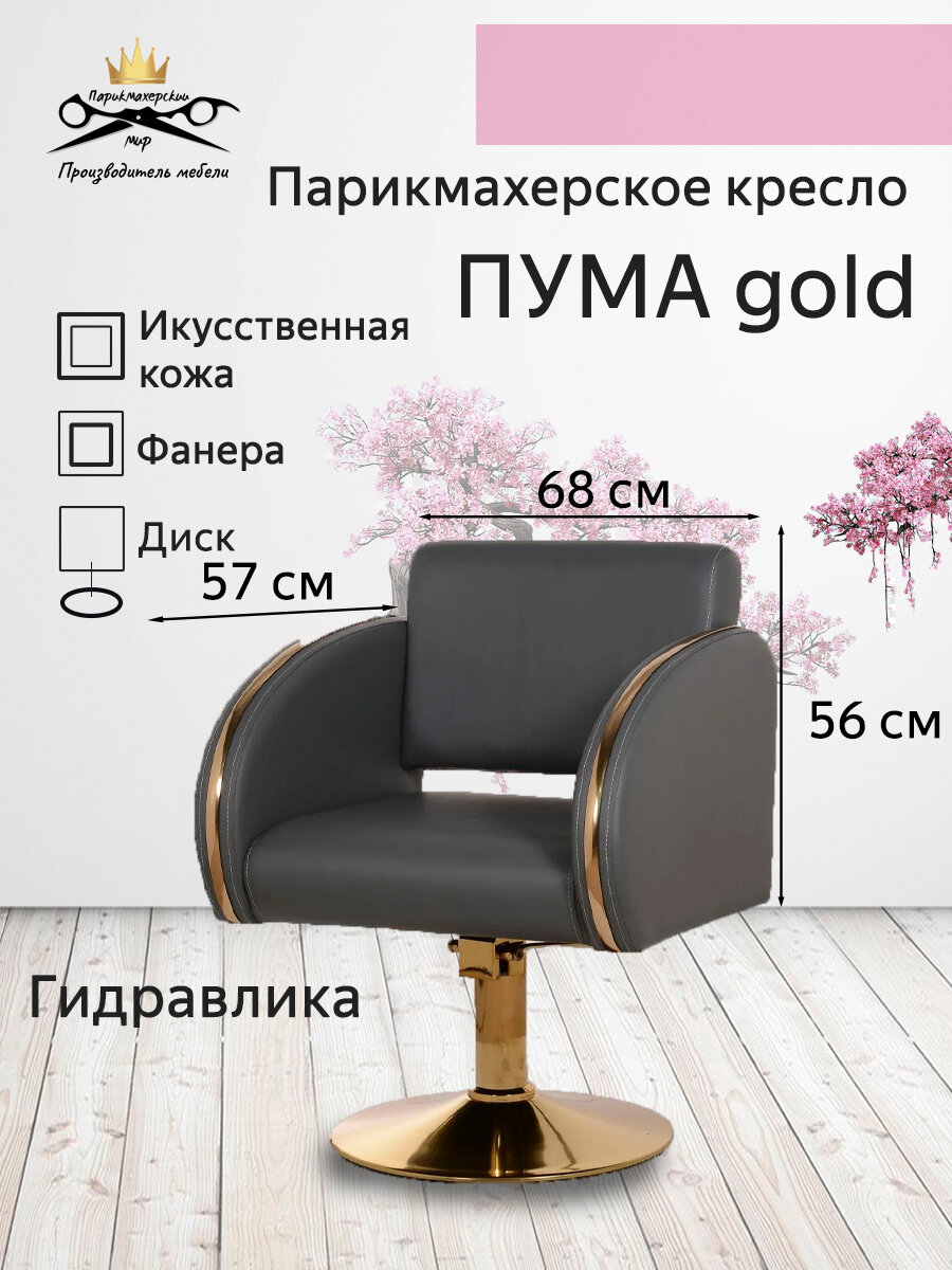 Купить Парикмахерское кресло «Пума Gold», серый, искусственная кожа — диск с доставкой по всей России. Парикмахерское кресло «Пума Gold», серый, искусственная кожа — диск: сравнение цен, характеристики, фото, актуальное наличие и цены.