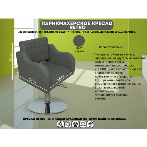 Парикмахерское кресло Retro на круглом основании в сером цвете - стильное и функциональное решение для вашего салона красоты.