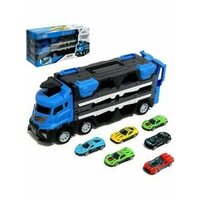 Купить Парковка 2 в 1 Truck, 6 машинок, трансформируется в автотрек, звук, цвет синий с доставкой по всей России.