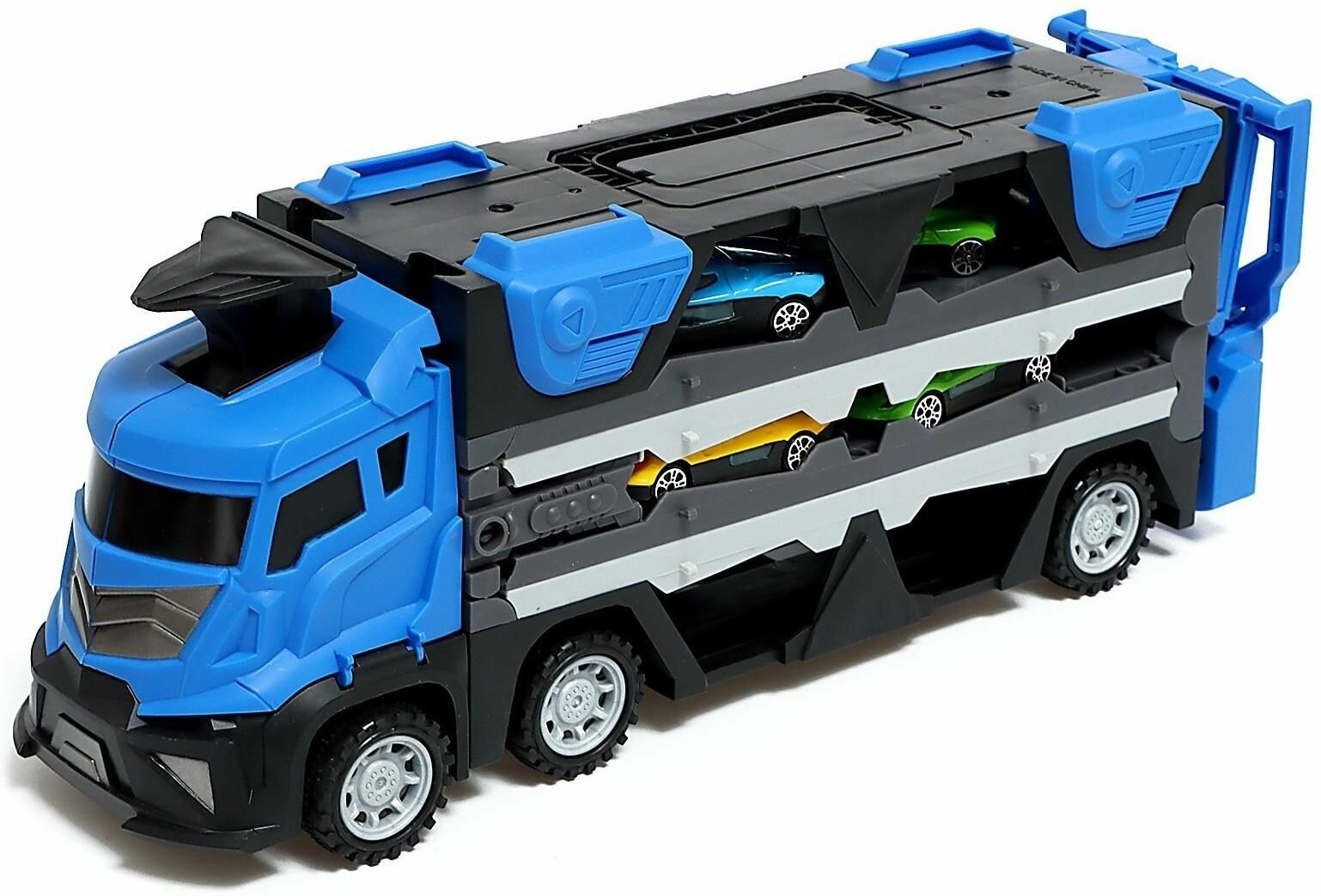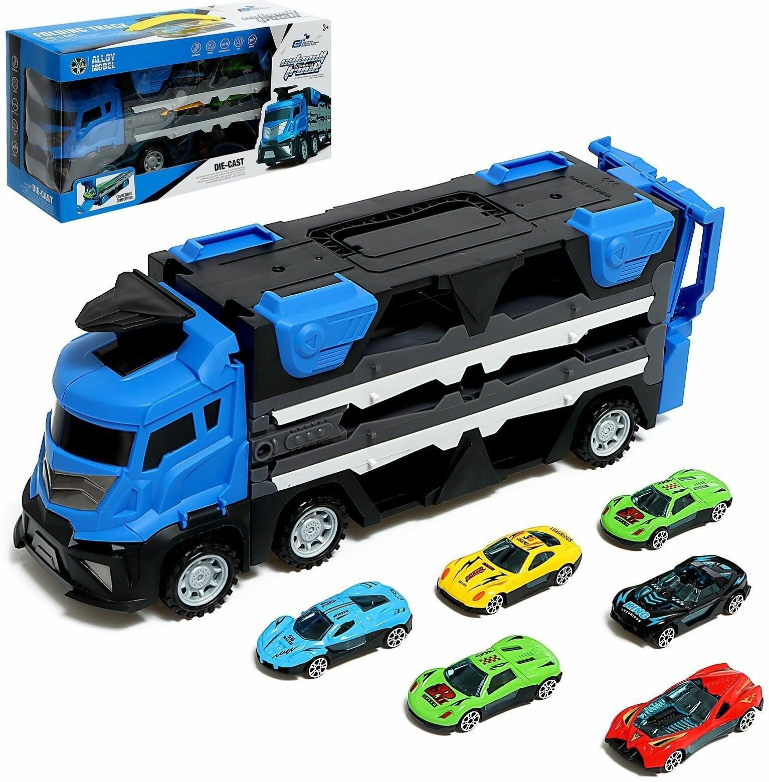 Парковка 2 в 1 Truck, 6 машинок, трансформируется в автотрек, звук, цвет синий