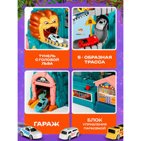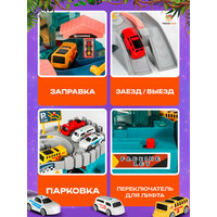 Большой игрушечный гоночный автотрек с машинками и звуком вызовет восторг у детей! Парковка для машинок включает в себя многоуровневую гоночную трассу с тонеллями и автопарк на 4 машинки. Автотрек имеет игрушечную парковку (паркинг) и гараж для машинок, а также магазин и дорожные знаки с наклейками.