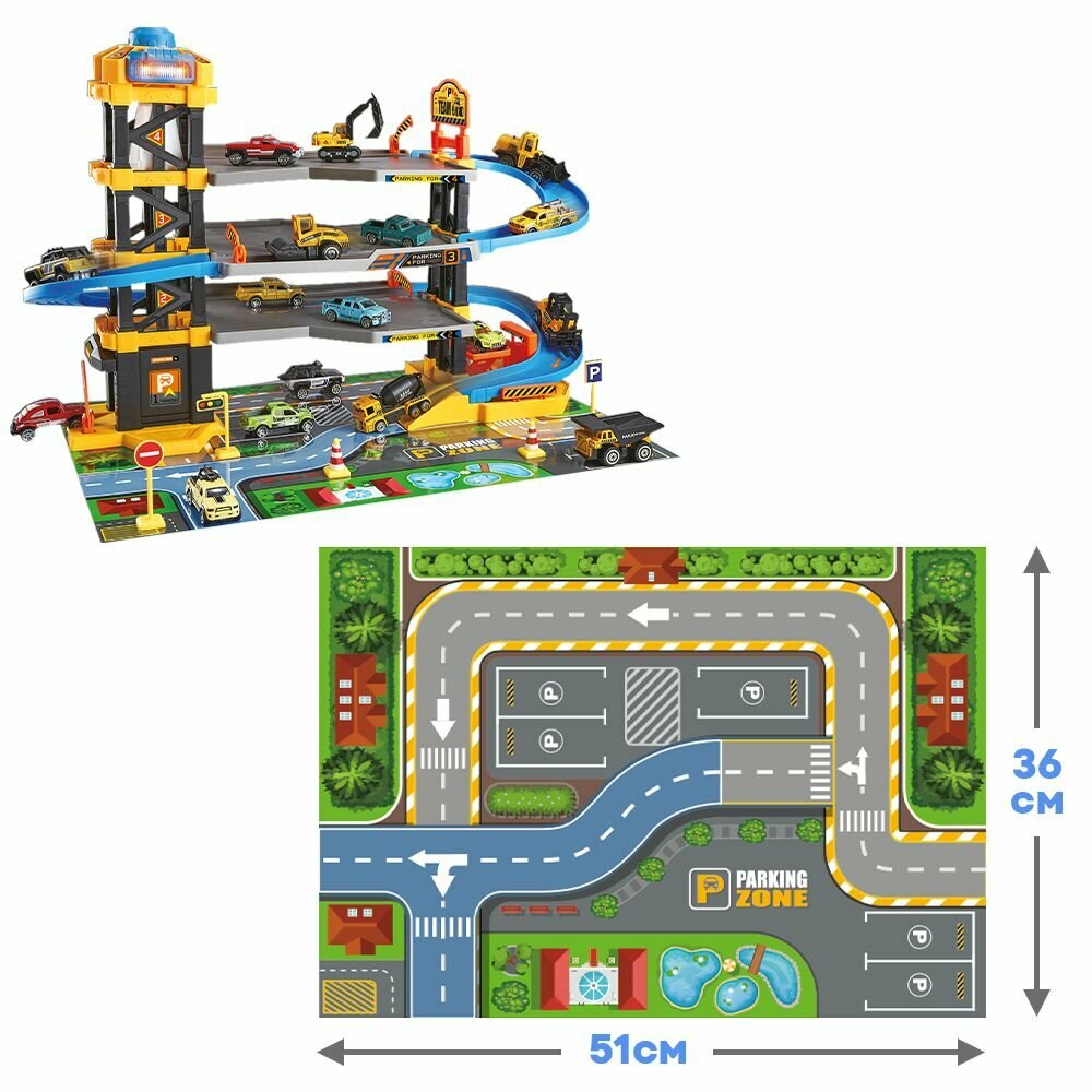машинки в комплекте, с ковриком, с лифтом
