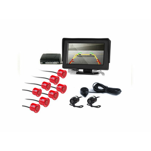 MasterPark 041-8-P-RED (красные датчики парковки) парктроник с камерой заднего хода с двумя камерами, восемью датчиками и монитором 4.3 дюйма – наиболее полный комплект оснастки автомобиля, который позволит водителю более безопасно парковать авто или двигаться на задней передаче.