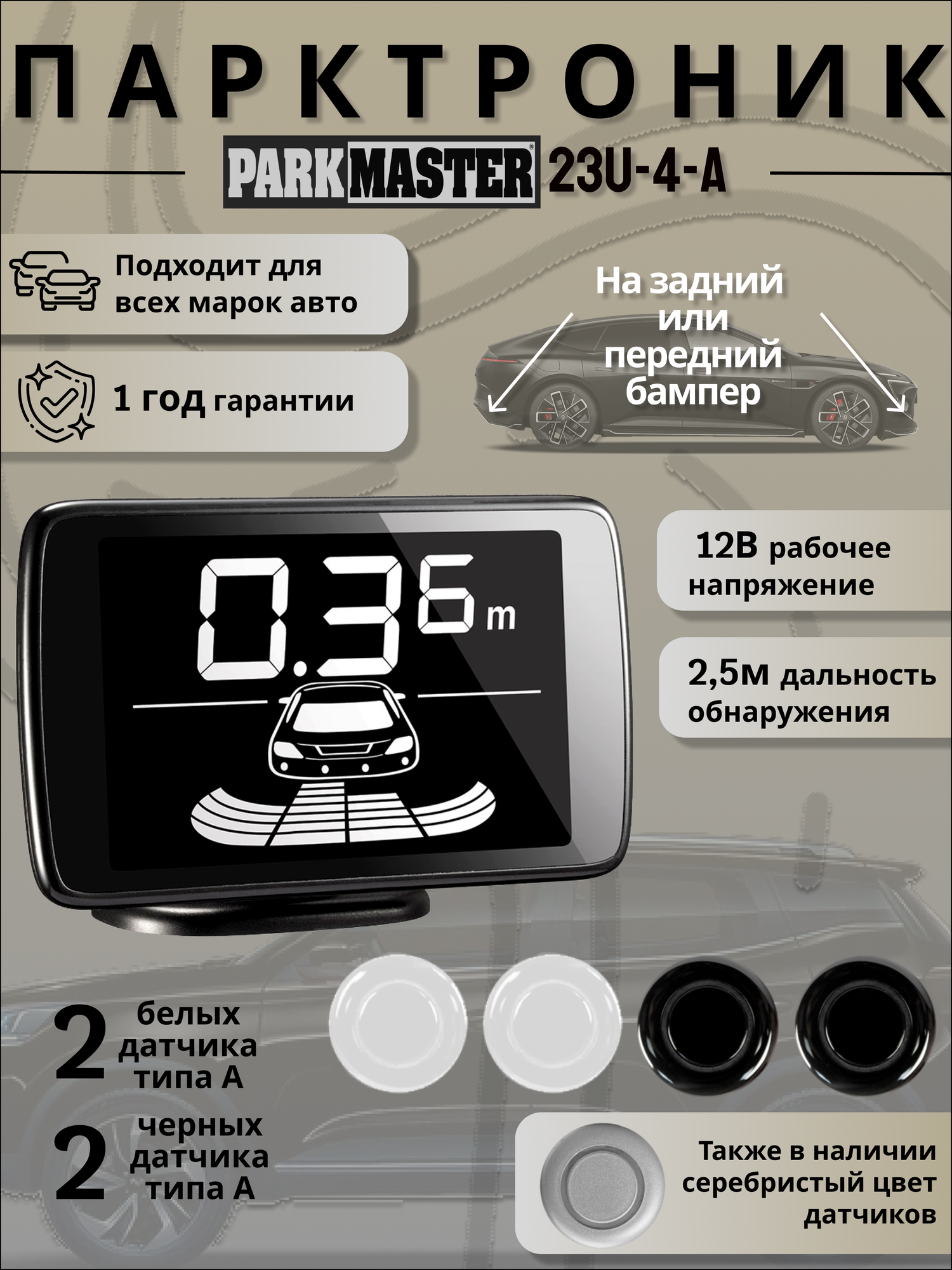 Парктроники на автомобиль, 4 датчика, черный/белый, 23U-4-A-b/w: сравнение цен, характеристики, фото, актуальное наличие и цены.
