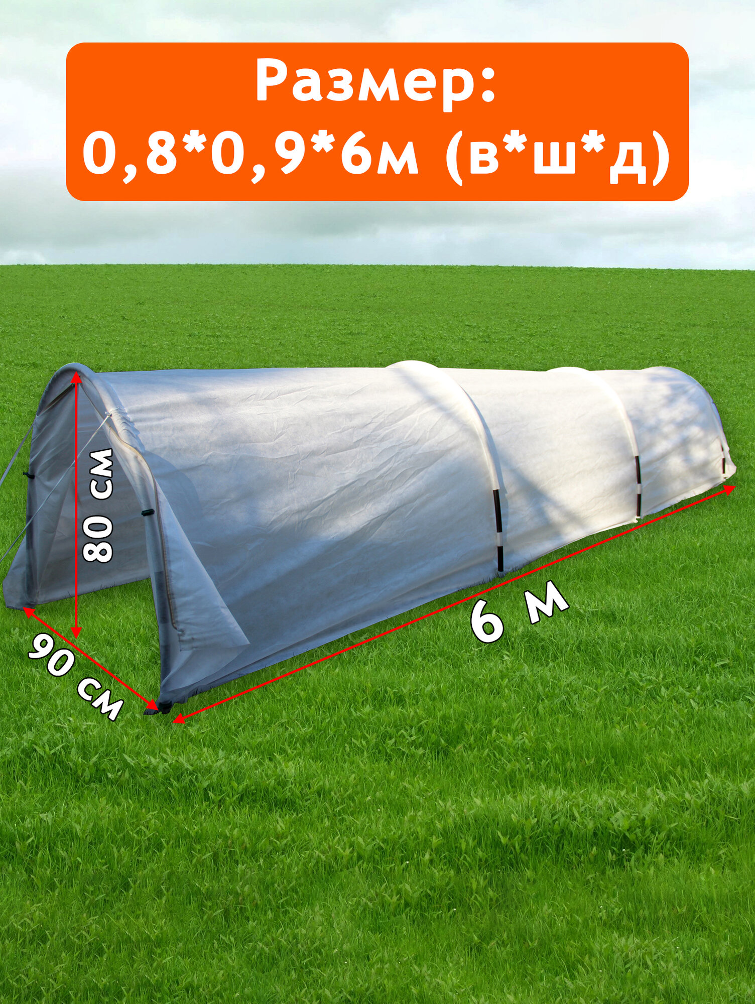 Размеры парника в установленном виде - длина 6 метров, высота 80 см, ширина 90 см.