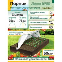 Парник дачный "Люкс". Дуги металлические 2х3м. Чехол из усиленного материала спанбонд 60г/m2 с УФ защитой. Каналы для металлических дуг сделаны методом спайки материала что делает их очень долговечными, такие канылы не разойдутся. Парник предназначен для выращивания различных культур в открытом грунте. Металлические дуги с ПВХ покрытием разгибаются, приобретая нужную форму, устойчивы к воздействию внешней агрессивной среды. Легкий дышащий нетканный материал обеспечивает надежную защиту растений. Создает стабильный микроклимат. Защищает от холодных ветров, промерзаний, резких перепадов температур и прямых солнечных лучей.