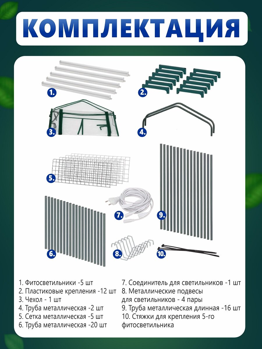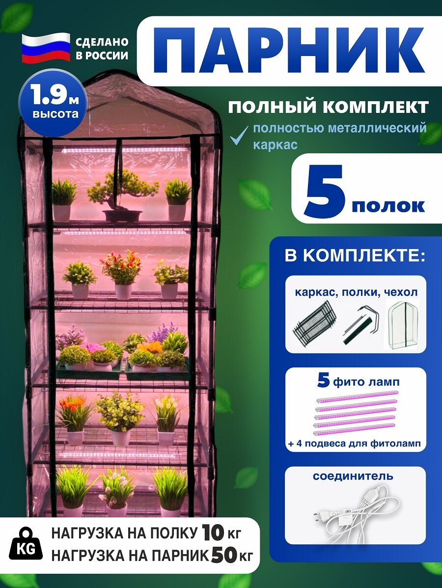 Парник Kuber Home , 5 полок , 5 фитоламп, металлический каркас, ПВХ покрытие, зеленый: сравнение цен, характеристики, фото, актуальное наличие и цены.