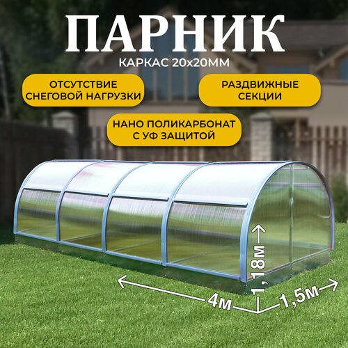 Купить Парник ТМК Удача 1,5 х 4 х 1,18 м, поликарбонат 3,7 мм, с оцинкованной грядкой с доставкой по всей России.